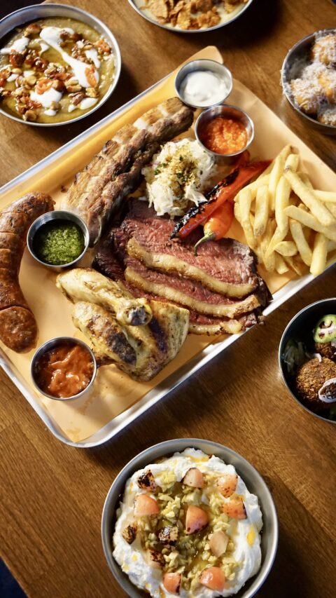 Expect bold flavours, crab doughnuts with cowboy butter, espresso-tamarind ribs, gochujang wings, and a double smash burger that goes full Animal Style. There’s a 450g Ibérico pork chop if you’re hungry, or fire-roasted cauliflower with black garlic if you’re not eating meat.